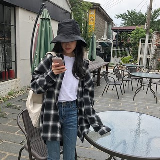 Áo Flannel sơ mi sọc caro đen trắng shopmap