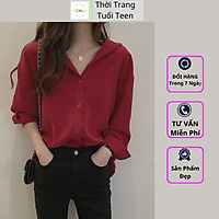 Áo sơ mi nữ tay dài form rộng trơn trẻ trung nặng động vải lụa mềm mịn-MUD03