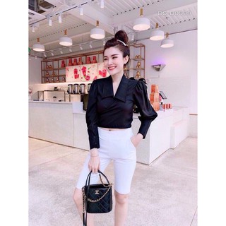 [HÀNG SẴN]SET ÁO SƠMI MIX GILE ĐỘN VAI kèm đai siêu sang chảnh