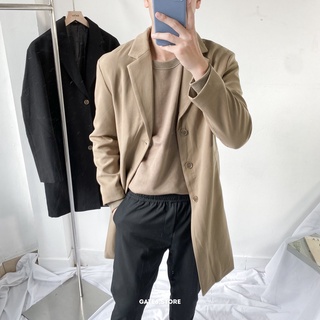 Áo Khoác Kaki Măng Tô Xám Nam MANDO Dáng Dài 2 Lớp Form Rộng Kiểu Dáng Basic Unisex Thời Trang Hàn Quốc KKN007