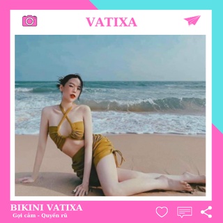 [ MẨU HOT ] Sét bikini nữ 2 mảnh quần váy rút dây áo mặc nhiều kiểu VATIXA BKN72 RÊU