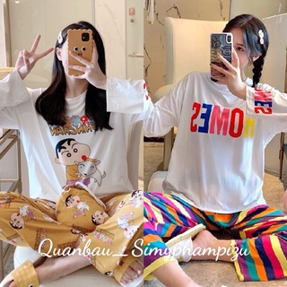 Bộ Đồ Bầu dài tay chất Thun Sữa Họa tiết xinh cho mẹ bầu và sau sinh có vén ti cho con bú tiện lợi BD939