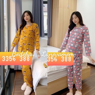Bộ bầu mặc nhà sau sinh cotton có khóa mở cho con bú Freesize dưới 69kg SS-1