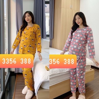 Bộ bầu và sau sinh DÀI TAY cho con bú, size 42->70kg, chất thái, cho bà bầu mặc nhà