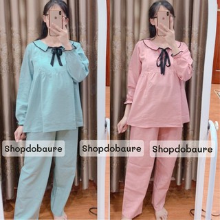 Bộ bầu và bộ mặc sau sinh cổ bèo có khóa cho con bú, đồ bầu mặc nhà cotton A003( DÀI )