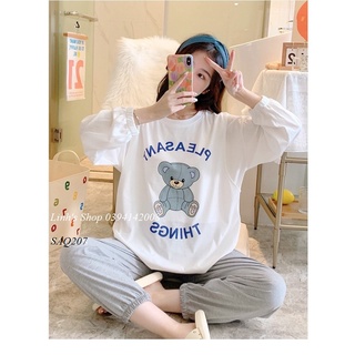 Bộ Đồ Bầu Sau Sinh Gấu Cúc Giữa Dài Tay Quần Chỉnh Chun mặc nhà và cho con bú BD914