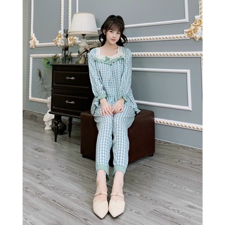 Bộ đồ bầu sau sinh và cho con bú ti XÔ NHẬT thô đũi Đẹp, mát - Pijama thời trang, Pizama mặc nhà dài tay cho mẹ Bigsize