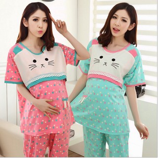 Bộ mặc nhà Bầu & sau sinh cho con bú mèo hồng SD20