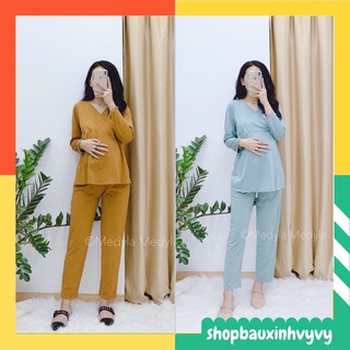 Bộ bầu và sau sinh Dài Tay 2 chức năng chất cotton cài cúc thật cực kì tiện lợi