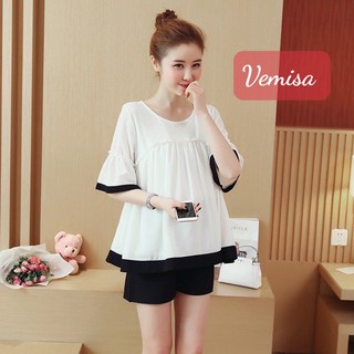 Áo bầu babydoll tiểu thư trắng phối viền đen (K KÈM QUẦN ) A089