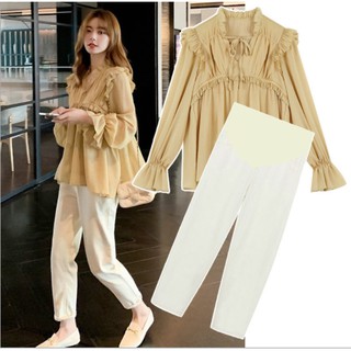 Quần bầu công sở thiết kế MUM'S SHOP FREESHIP Quần dài bầu dáng baggy có đáp bụng co dãn thoải mái tới khi sinh