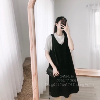 Váy Yếm bầu công sở Aidenshop đầm bầu văn phòng màu đen(có size 40-75kg,không áo)