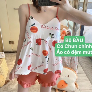 Bộ bầu MÙA HÈ quần đùi áo 2 dây tùy chỉnh có đệm mút mặc ở nhà