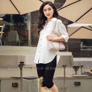 Áo Bầu Sơmi thiết kế MA38, chất đũi Hàn mềm đẹp, form sơmi dài đuôi tôm mẹ mặc xinh trẻ trung