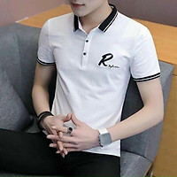 Áo thun nam tay ngắn cổ trụ thêu chữ trẻ trung lịch lãm T90
