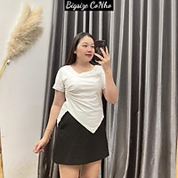 Áo thun kiểu tay ngắn bigsize nữ bo sườn tôn dáng, Áo phông cổ tim lệch Chuppy 58-95kg BIGSIZE CÔ NHỎ A40 - Màu trắng