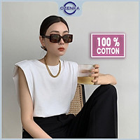 Áo thun tay hến độn đệm vai nữ đen trắng OZENKA , áo phông kiểu hàn quốc sang chảnh hot trend 2022 100% cotton mềm mịn