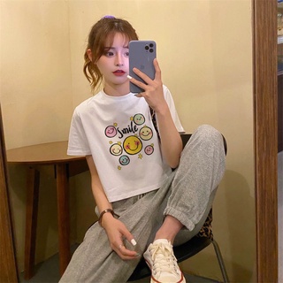 Áo Thun Crotop Form Rộng Unisex Tay Ngắn Chất Cotton Mềm Mại In Hình SMILE Ulzzang Style Hàn Quốc TTT0179