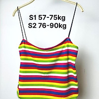 Áo hai dây bigsize thun nữ cao cấp croptop dáng ôm sọc cầu vồng DS - SỌC HỒNG