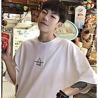 Áo thun nam nữ tay lỡ form rông cổ tròn cao cấp Hàn Quốc in hình tam giác mảnh cotton 100 co dãn 4 chiều YiiL AT03