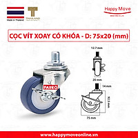 Bánh xe đẩy PU tải nhẹ cọc vít xoay khóa - 50-65-75mm - Happy Move Thái Lan