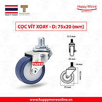 Bánh xe đẩy nylon tải nhẹ cọc vít xoay 360 độ - 50-65-75mm - Happy Move Thái Lan