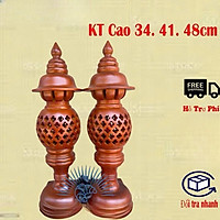Đèn thờ hình trái dứa (trái thơm) gỗ Tràm, CẶP ĐÈN THỜ TỔ ONG GỖ - Màu đỏ