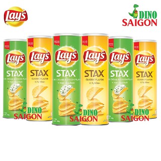 Combo 6 Hộp Bánh Snack Khoai Tây Lay's Stax Malaysia 160g gồm 3 Vị Tự Nhiên và 3 vị Kem Chua Hành