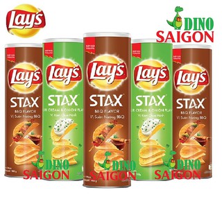 Combo 5 Hộp Bánh Snack Khoai Tây Lay's Stax Malaysia 160g gồm 3 vị Sườn nướng BBQ + 2 vị Kem Chua Hành