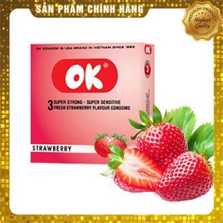 CHÍNH HÃNG]Bao cao su Ok Hương Dâu Tây - Bạc Hà - Nho - Không Mùi ( Hộp 3 Chiếc)