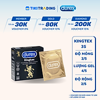 Bao Cao Su Size Nhỏ Durex Kingtex Ôm Sát Va Chạm Chân Thật Hộp 3 Bao