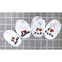 Sét đôi bao tay chân mũ I Love Dad chất petit mềm mại cho bé sơ sinh đến 7kg