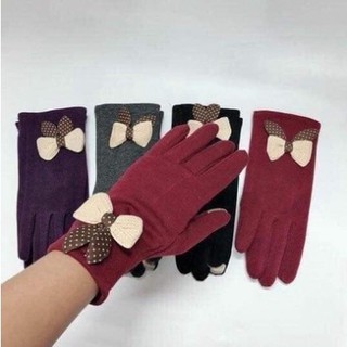Găng Tay Nỉ Nơ Lót Lông Mùa Đông Cảm Ứng Chống Trượt Dễ Thương