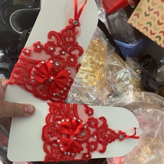 Găng tay cô dâu hở ngón màu đỏ giá 35k