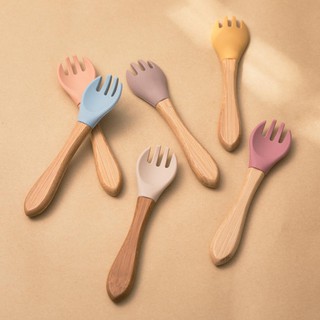 Nĩa - dĩa Chất Liệu Silicon Gỗ Thực Phẩm Tiện Dụng Dành Cho Bé Tập Ăn
