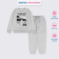 Bộ đồ dài tay cho bé trai Bigfox Miss Meow vải bozip mùa thu đông mặc nhà size đại trẻ em 3-8 tuổi