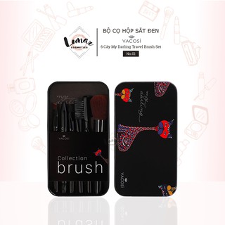[Đại Lý Vacosi] Bộ Cọ Hộp Sắt Đen - Đỏ Vacosi 6 Cây My Darling Travel Brush Set