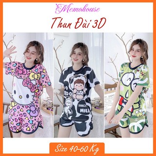 Đồ Bộ Thun Cotton ĐÙI 3D hoạt hình dễ thương - Form < 60kg
