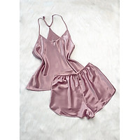 Đồ ngủ sexy nữ FREE SHIP Đồ ngủ lụa phi có mút ngực 2 dây hở lưng, mịn mịn, quyến rủ, TTK_DN3