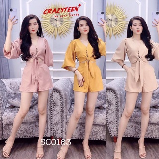 Sét bộ đùi cạp chun áo kiểu cột dây eo đính nút