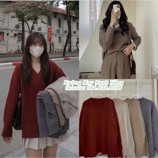 Áo len trơn cổ V chất đẹp, Áo len đỏ chất len mịn cao cấp hàng Quảng Châu loại 1