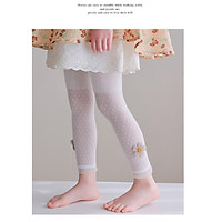 Quần tất không bàn cho bé gái, quần legging lưới mỏng, co giãn 4 chiều đính nhiều họa tiết size từ 1 đến 10 tuổi