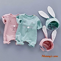 Set Body dài tay thu đông kèm mũ tai thỏ siêu đáng yêu cho bé sơ sinh 0-2 tuổi