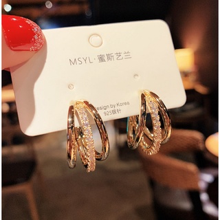bông tai 3 vòng tròn sang chảnh, khuyên tai hàn quốc