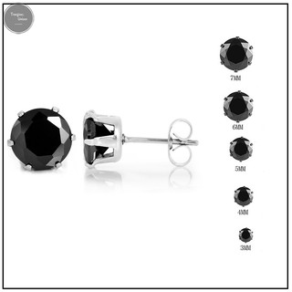 Bông tai nam nữ 1 hạt đá đen chuôi INOX không gỉ - 1 chiếc - BT142