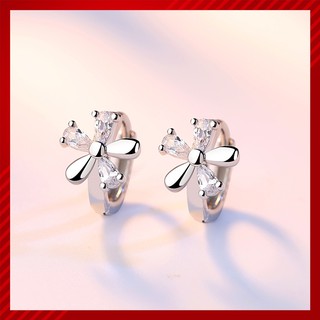 Bông tai nữ hình hoa 5 cánh đính đá, hợp kim mạ bạc cao cấp, khuyên tai sang trọng