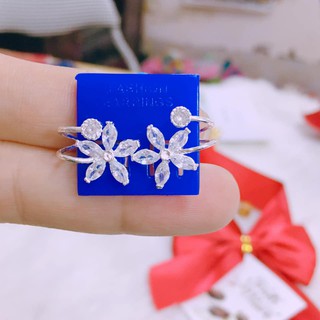BÔNG TAI BẠC TA - BÔNG TAI HOA ĐÁ TO SIÊU SANG CHẢNH