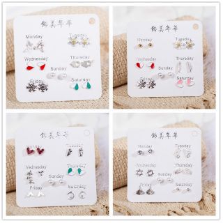 SET 7 đôi khuyên tai/ bông tai mạ bạc thiết kế tinh xảo bản nâng cấp, trắng và sáng hơn