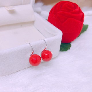 BÔNG TAI NỮ BẠC TA DẠNG MÓC CÂU GẮN HẠT CHÂU ĐỎ ĐEN