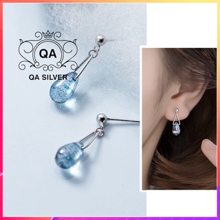 Khuyên tai bạc 925 giọt nước bông mặt đá vân xanh nữ S925 DEWDROP Silver Earrings QA SILVER EA180903